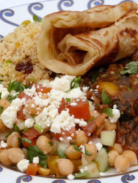 Both sandwiches are wrapped in a homemade Moroccan flat bread called